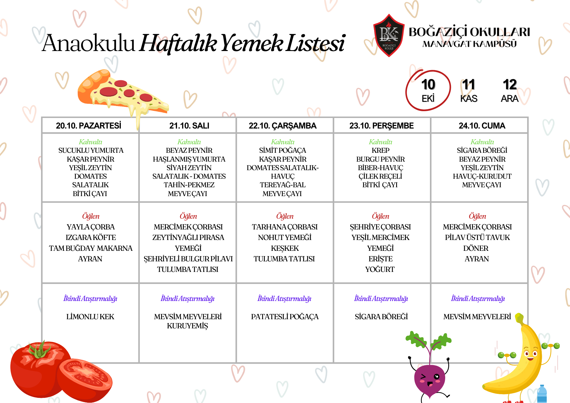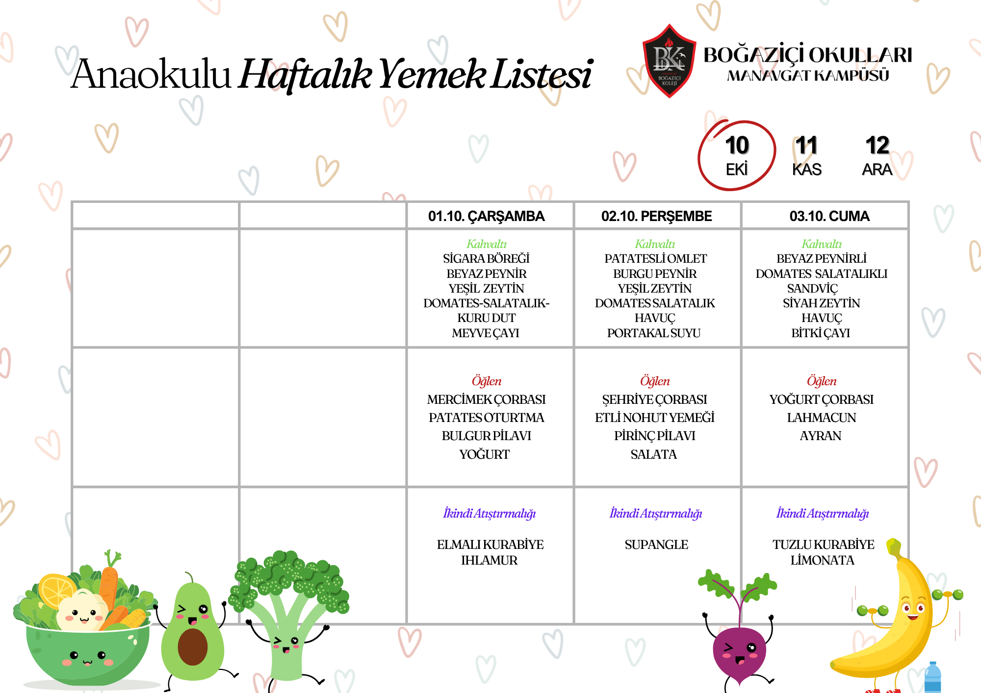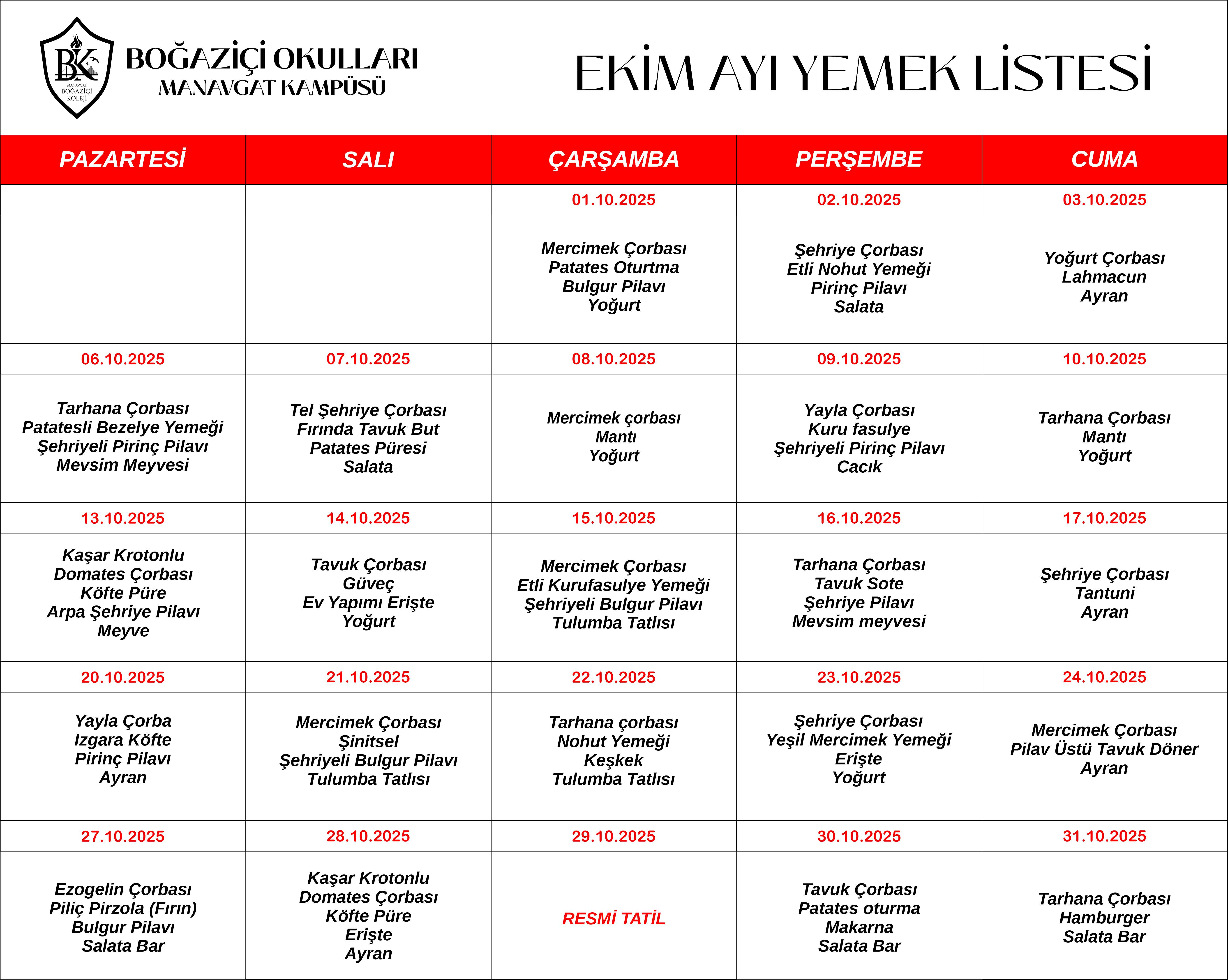 2024-2025 Eğitim Öğretim dönemi aylık yemek listemiz