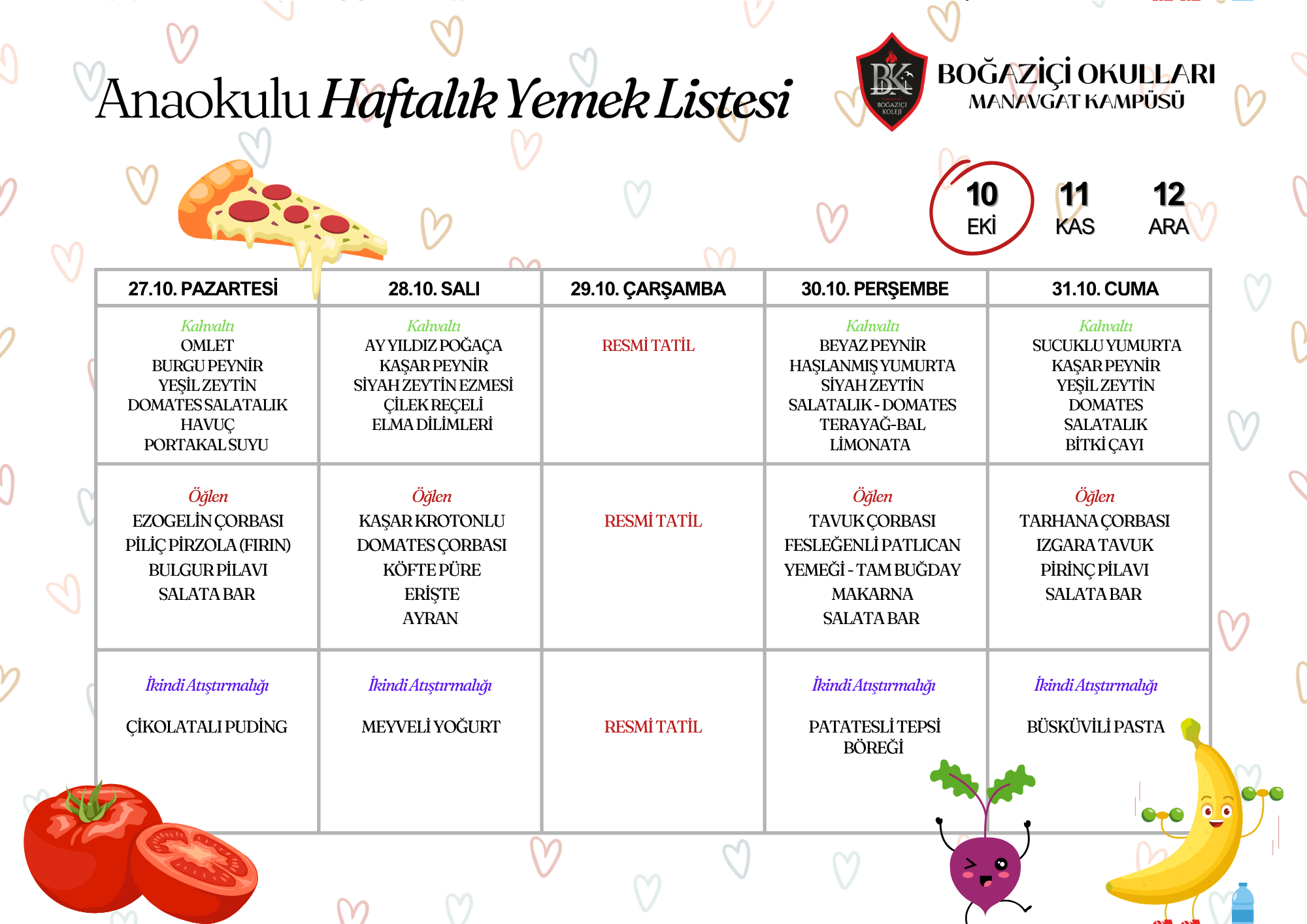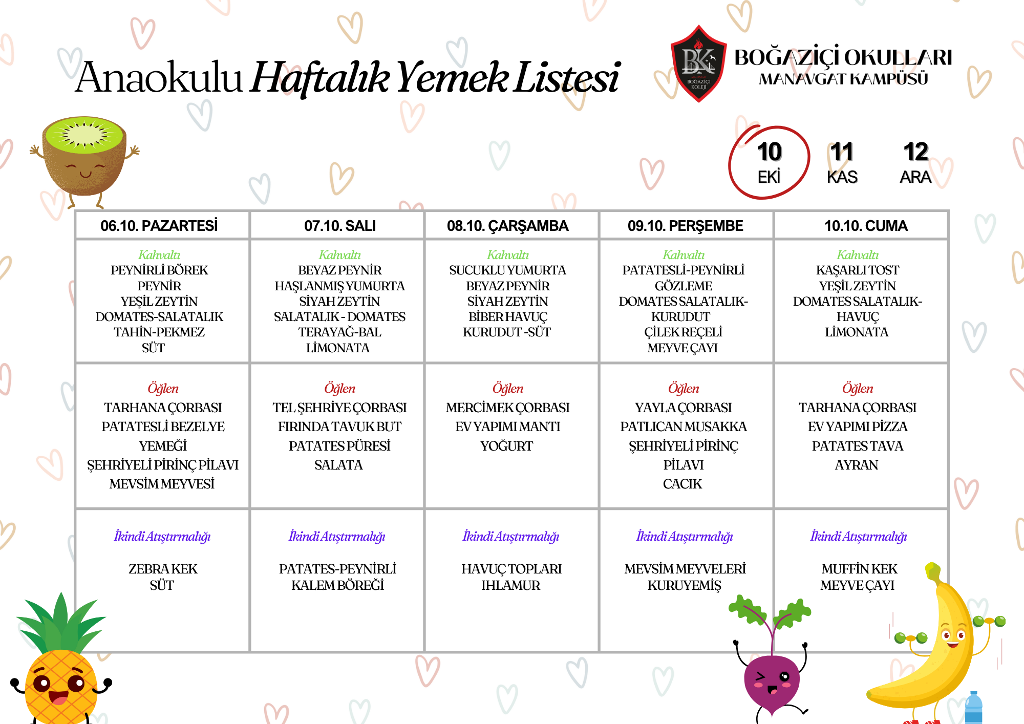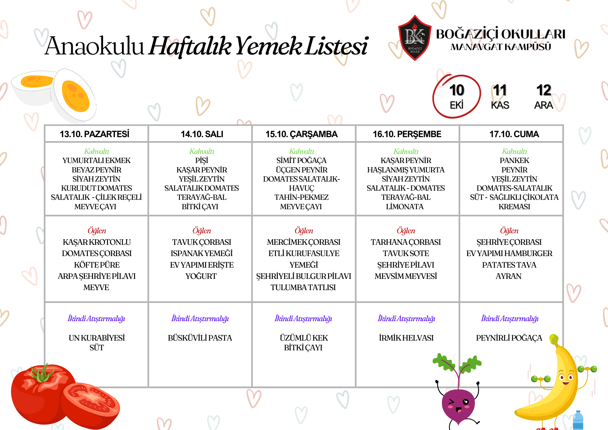 2024-2025 Eğitim Öğretim dönemi aylık yemek listemiz